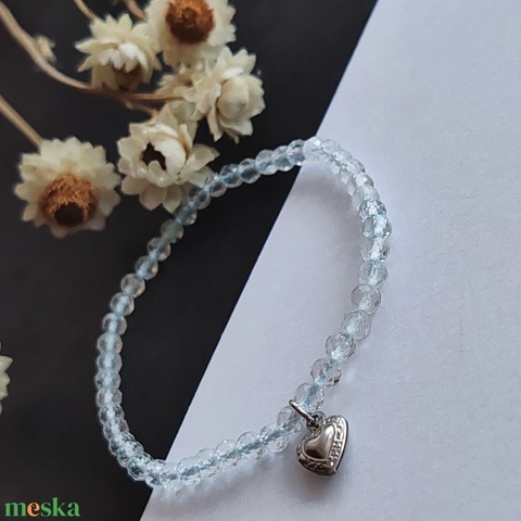 - Anyag/Összetevő gumiszál, nemesacél medál, kék topáz