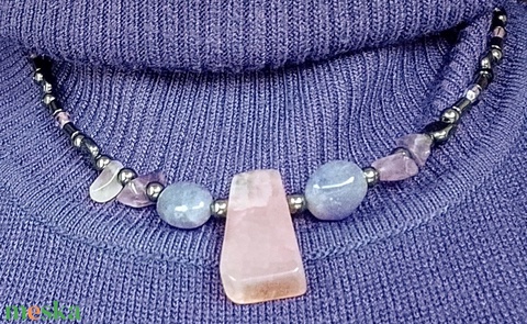 Hematit, zöld achát ásvány nyaklánc, nyakék