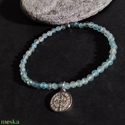 - Anyaga: gumiszál, nemesacél medál, apatit