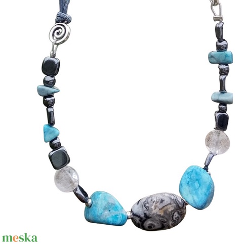 Apatit hematit hegyi kristály ásvány nyaklánc, nyakék