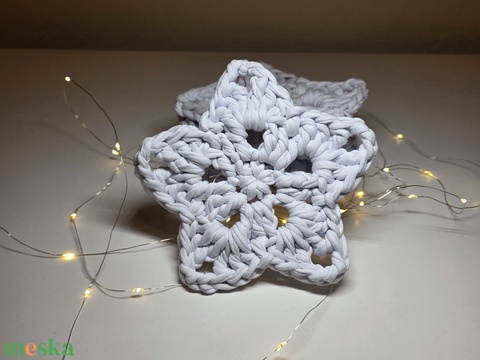 Horgolt csillag dekoráció – kézzel készült, puha pamutfonalból
