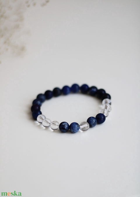 Röviden: szodalit + hegyikristaly = a tiszta elme és a békés bölcsesség karkötője.