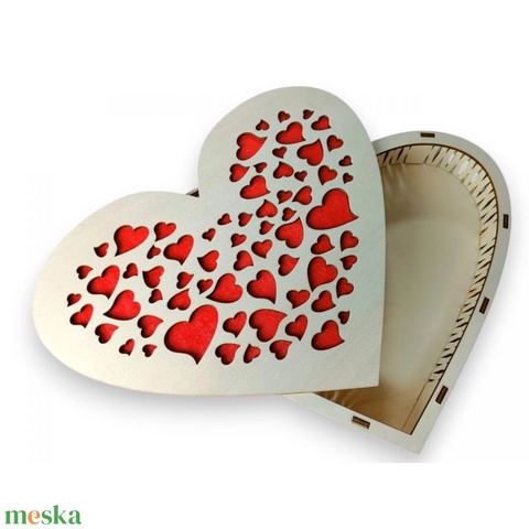 Lézervágott szív alakú ajándék doboz, 25x20x5cm
