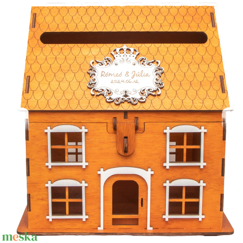 Esküvői pénzátadó házikó, nászajándék, pénzgyűjtő doboz, személyre szabható