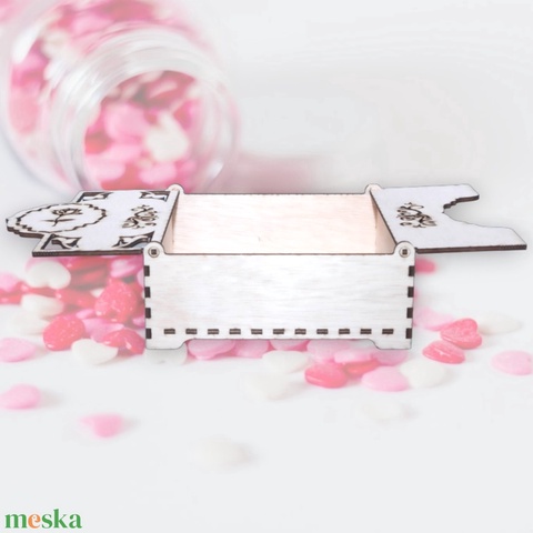 Lézervágott dobozka szalvétához, zsebkendőkhöz, bizsukhoz, 19x19x7cm