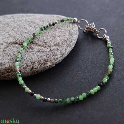 - Anyaga: ruby - zoizit, nemesacél szerelék, sodrony