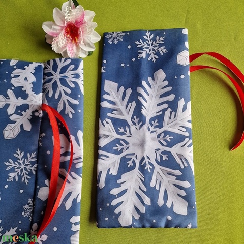 DCS121 - Hópehely mintás kék alapú textil ajándéktasak, mikulás zsák, bortartó, pezsgő csomagoló