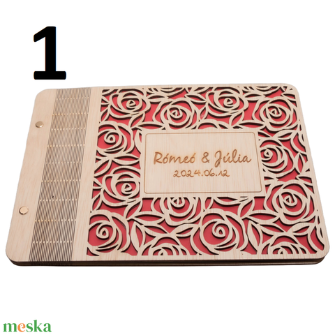 Esküvői vendégkönyv, választható lézervágott fa borítóval, 31x22cm