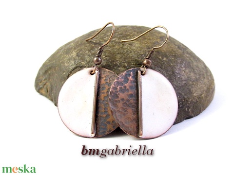 Vidám Felemás - fehér kerek, lógós tűzzománc fülbevaló - egyedi tervezésű kézműves ékszer