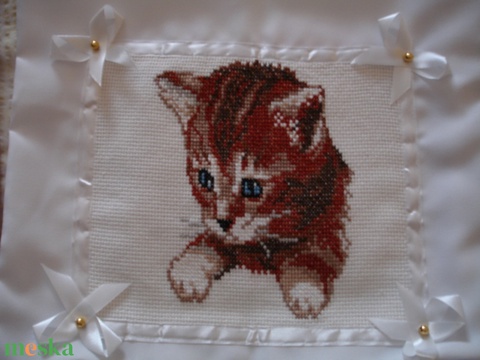 Keresztszemes párna huzat Cica mintával
