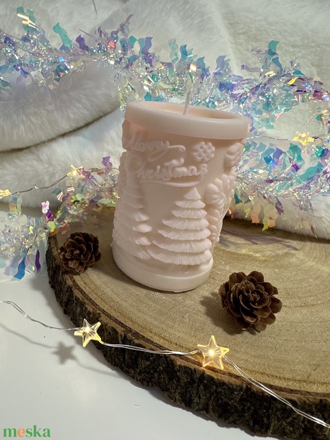 Karácsonyi Szójaviasz Henger Gyertya - Fehér/Púder