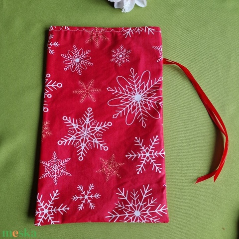 DCS88 - Hópehely mintás mikulás zsák, textil ajándéktasak - piros