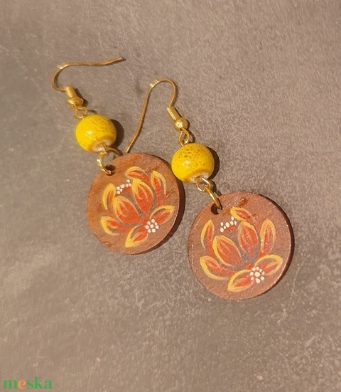 fa, akrilfesték, hipoallergén fém, gyöngy