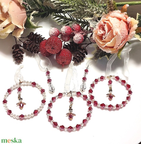 Karácsonyi dísz szett - piros, 5 db gyöngy karácsonyfadísz