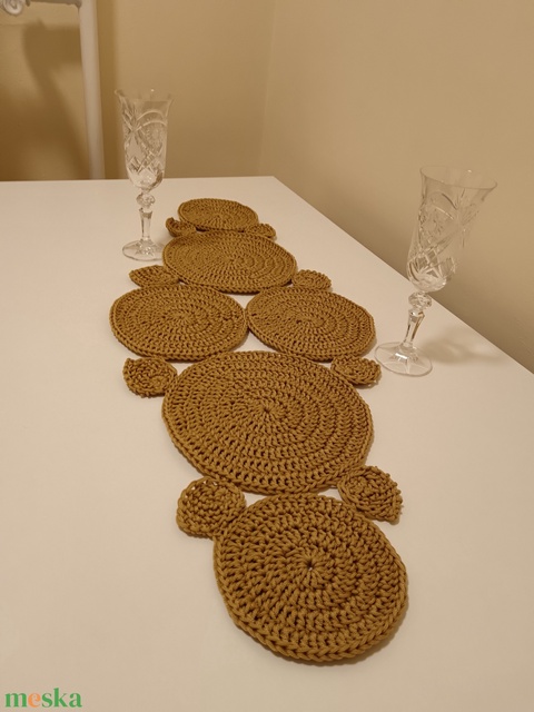 Horgolt asztali futó poliészter zsinórfonalból – elegáns lakásdekor (90 cm)