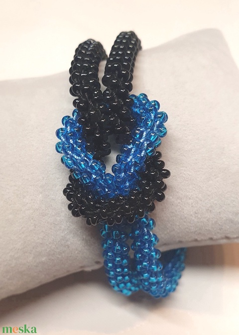 Kék-fekete gyöngyhorgolt karkötő