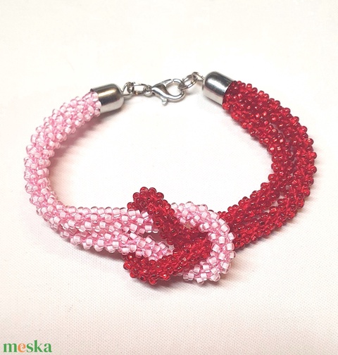 Piros-rózsaszín gyöngyhorgolt karkötő