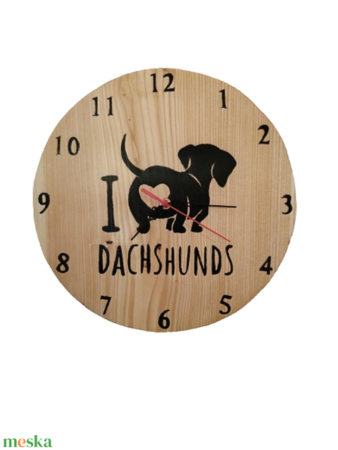 Nagyméretű, fából készült falióra tacskó kutyussal