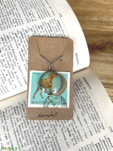 Régi vintage bélyeg nyaklánc vizsla kutya kutyás