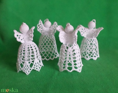 Karácsonyi angyal horgolt fenyő dísz 4 db/ garnitúra