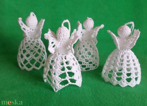 Karácsonyi angyal horgolt fenyő dísz 4 db/ garnitúra