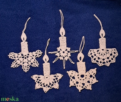 Karácsonyi gyertya horgolt fenyő dísz 5 db / garnitúra