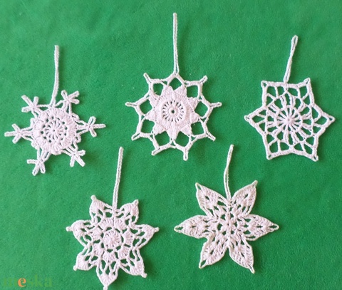 Horgolt Karácsonyi hópelyhek 5 db/garnitúra