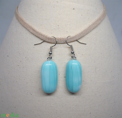 ÜVEG FÜLBEVALÓ, világos türkiz