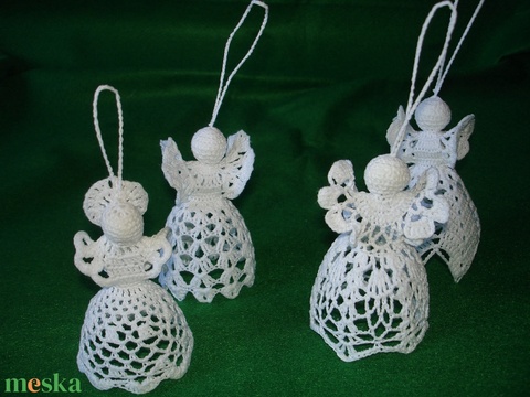 Karácsonyi angyal horgolt fenyő dísz 4 db/ garnitúra