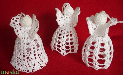 Karácsonyi angyal horgolt fenyő dísz 3 db/garnitúra