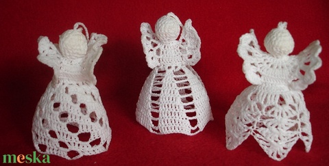 Karácsonyi angyal horgolt fenyő dísz 3 db/garnitúra