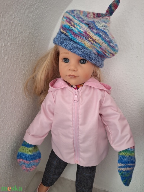 - Anyaga: rózsaszín dzseki anyag, gyapjúfonal, gyapjúszövet
