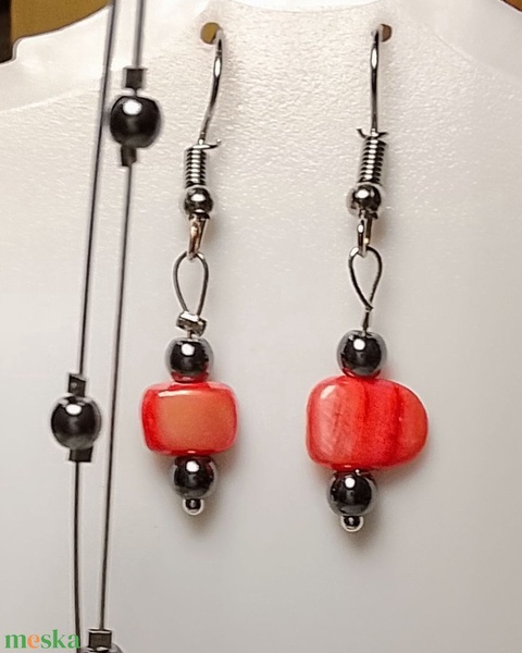 Fülbevaló festett rózsaszín kagylóval és hematit ásvánnyal