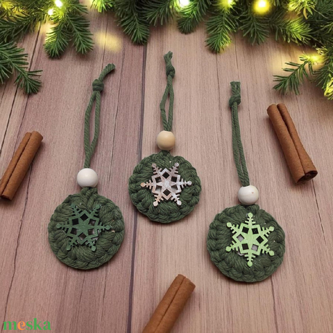 Karácsonyfadísz -zöld koszorú makramé