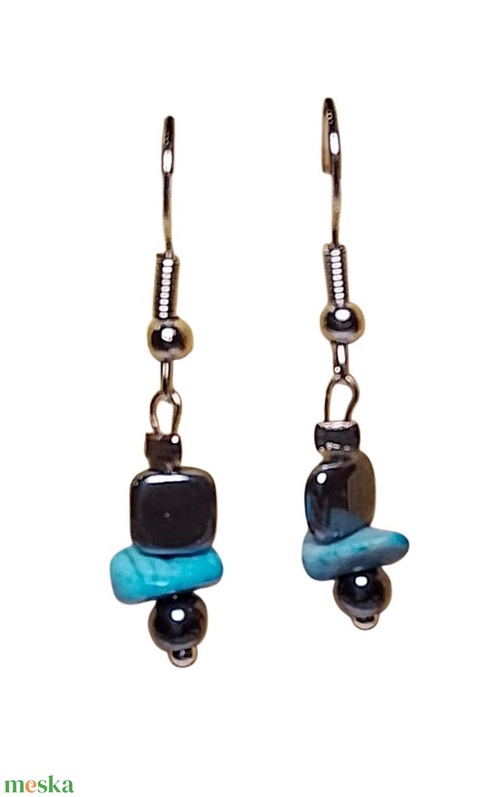 Fülbevaló festett kék kővel és hematit ásvánnyal