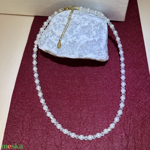 Gyöngynyaklánc csiszolt kristálygyöngyökkel menyasszonyi viselet ajándékdobozban