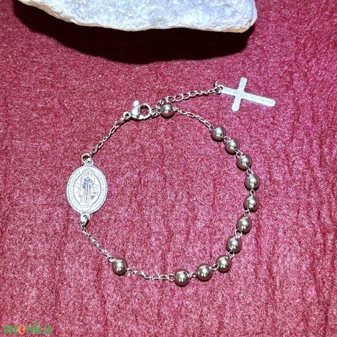 Ezüst színű nemesacél rózsafüzér karlánc karkötő