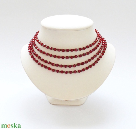 4 soros meggypiros kaláris bronzzal - 6 mm-es csiszolt üveggyöngyből