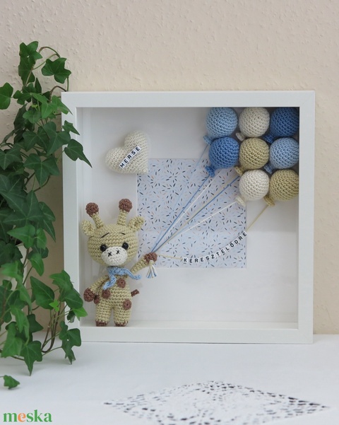 Horgolt, névreszóló ZSIRÁF babaköszöntő kép, babaszoba dekoráció