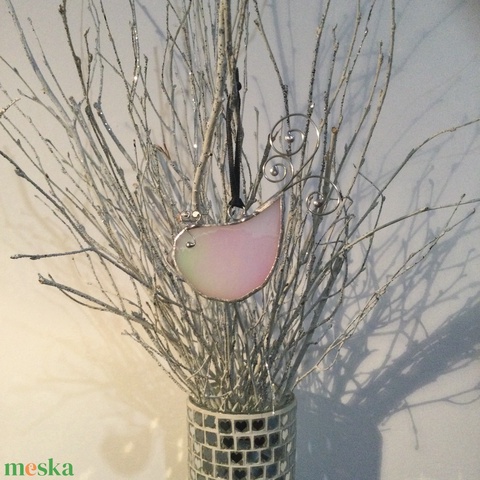 Üvegdísz - irizáló madárka - rózsaszín, kékes-zöld