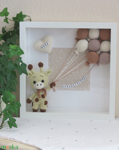 Horgolt, névreszóló ZSIRÁF babaköszöntő kép, babaszoba dekoráció