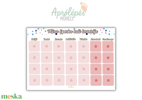 Egyedi heti tervező gyerekeknek – tépőzáras elemekkel, saját ovis jellel