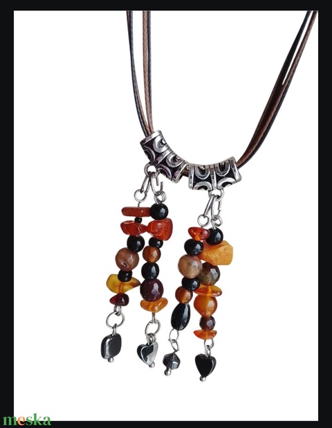 Borostyán, hematit, üveg és achát gyöngyökből készült nyaklánc