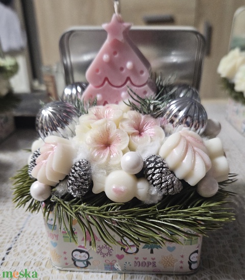 Karácsonyi illatviasz virág box (rózsaszín)