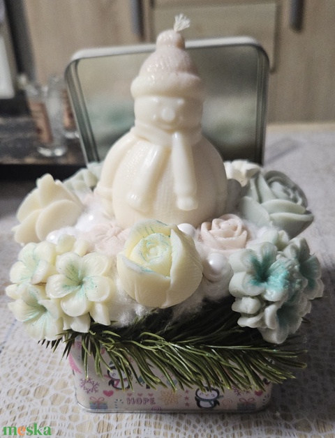 - Anyaga: 100%szójaviasz, illóolaj, fémdoboz, tűzőhab, karácsonyi gömb, micapor