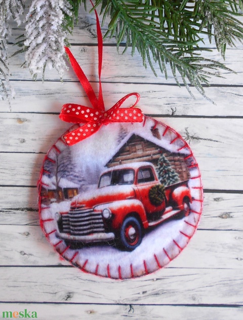 Teherautós kör alakú karácsonyfadísz 7.