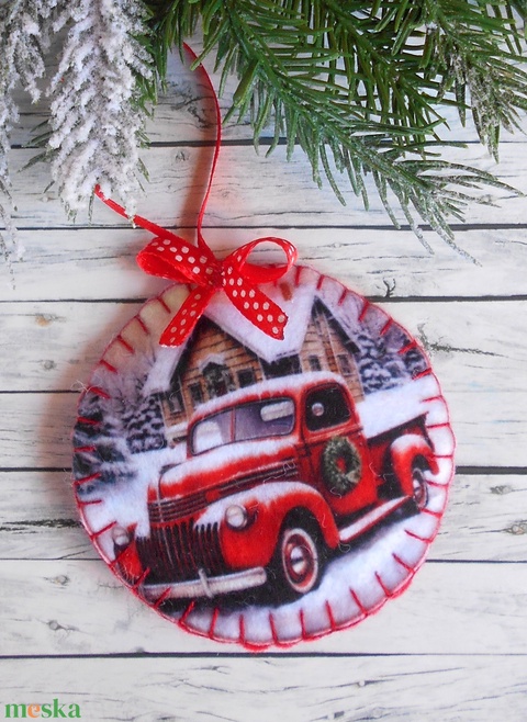 Teherautós kör alakú karácsonyfadísz 12.
