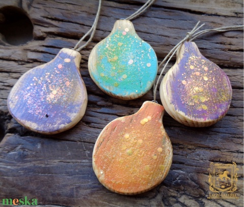 Csillogó Gömbök - Rusztikus Fa - Falra akasztható - Ajándék ötlet - Karácsony, Karácsonyfa dísz