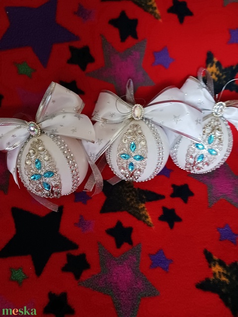 Fehér ezüst,diszitett gömb