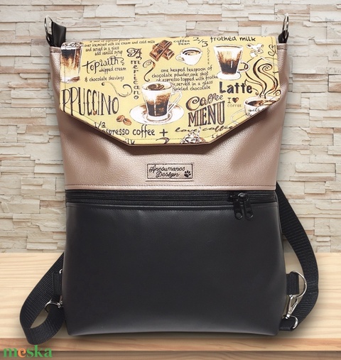 Cafe time fedélrészes 3in1 hátizsák univerzális táska fekete-púder alapon